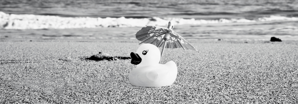 Er – dessen Blick sich im Nirgendwo am Horizont zu verlieren schien – schielte durch die Sonnenbrille in Richtung Entenschnabel. Dieser drehte einige Extrarunden für den Gockel und stellte dann befriedigt fest, dass seine Blicke ihm aufs Handtuch folgten.